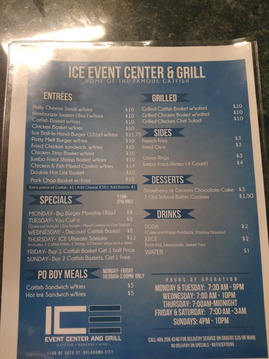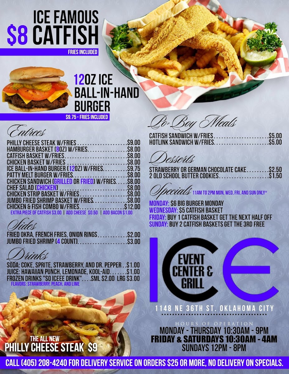 Welcome to Ice Events Center & Grill, a vibrant bar and grill located in Oklahoma City. This culinary gem offers a delightful menu that caters to all tastes. Their selection ranges from juicy grilled chicken salads to jumbo fried shrimp, perfect for a quick bite or a full meal. For those craving comfort food, the chicken strips and fish baskets are standout choices, each prepared with care and served alongside crispy fries and bread.